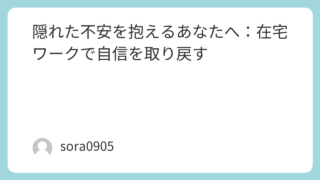 未分類 隠れた不安を抱えるあなたへ:在宅ワークで自信を取り戻す